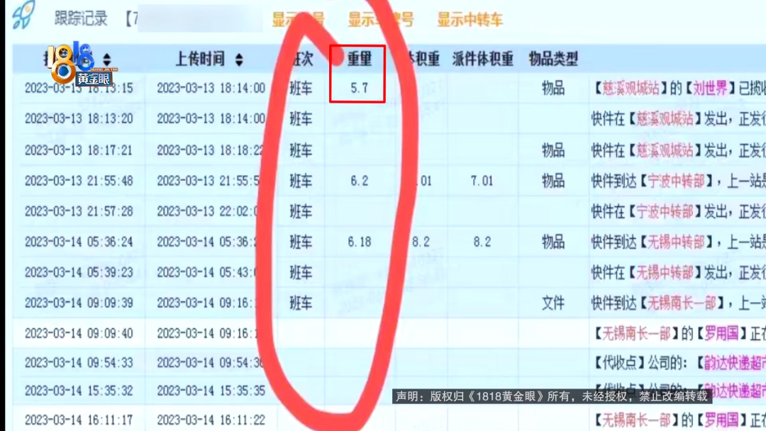 高老板提供了物流记录,3月13号,店里把衣服打包寄出去时,快递重量是