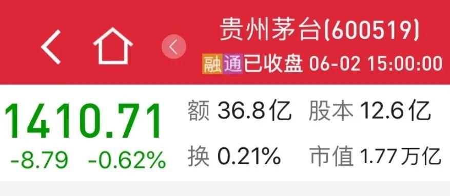截至2日收盘,贵州茅台股价报收1410.71元,微跌0.62%。