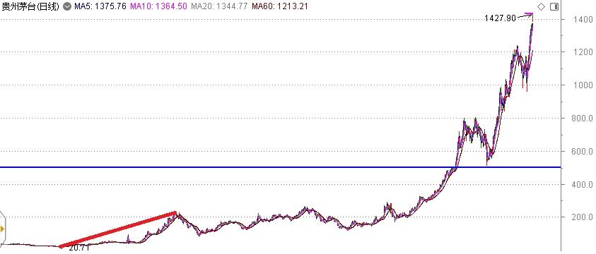 短短两年多的时间里,茅台股价涨幅已经接近200%,不但突破了千元大关,还于近期向1500元关口发起进攻。