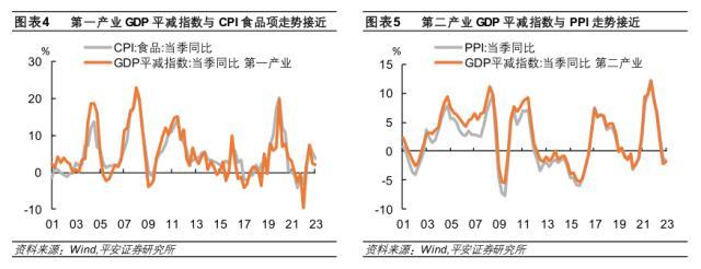 GDP平减指数与CPI食品项走势接近,农食产品价格变化较为同步。