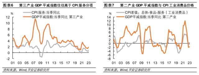 GDP平减指数与CPI服务分项变化趋势一致,但因大量服务产品并未计入居民消费一篮子商品,GDP中的服务价格增速系统性地高于CPI中的服务分项。