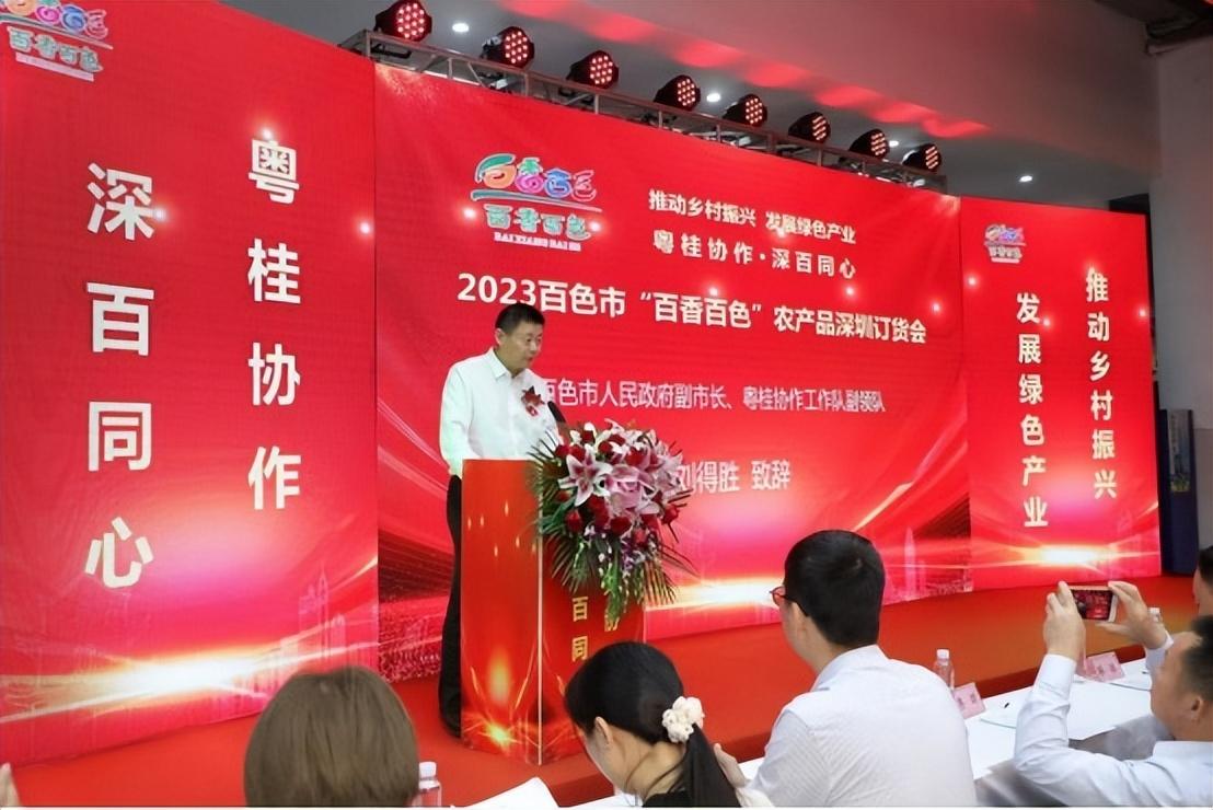 4月26日,由深圳市乡村振兴和协作交流局、粤桂协作工作队百色工作组、百色市农业农村局、百色市乡村振兴局(深百协作办)主办,深圳市绿色农业发展促进会、深圳市小喜象科技有限公司承办,深圳市福田农产品批发市场有限公司、深圳市寻农记商业管理有限公司、深圳粤桂源生态农产品供应链有限公司协办的“粤桂协作•深百同心”2023百色市“百香百色”农产品深圳展示订货会启动仪式在深圳市福田农产品批发市场成功举办。