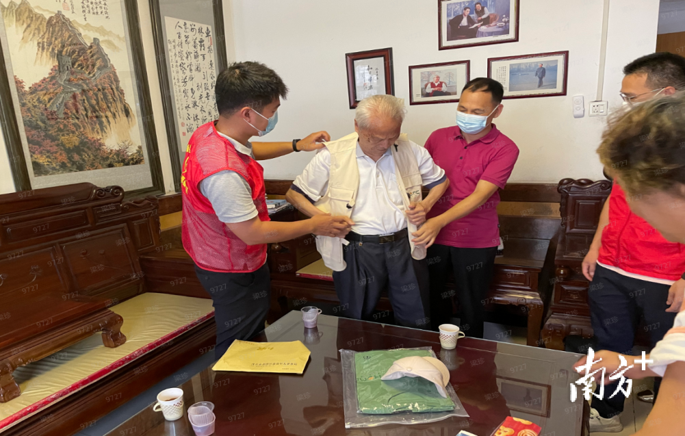 “离休不是革命的终点,是为党的事业奋斗的新起点”,已经90多岁的老兵邓刚,仍然精神矍铄活跃在老促会,为老区群众解决“读书难、行路难、看病难、饮水难、用电(收看电视)难”等“五难”奔走解决。工作人员与他聊近况、话家常,贴心询问身体健康状况,叮嘱家属照护注意事宜,协助试穿马甲,现场温馨融洽。