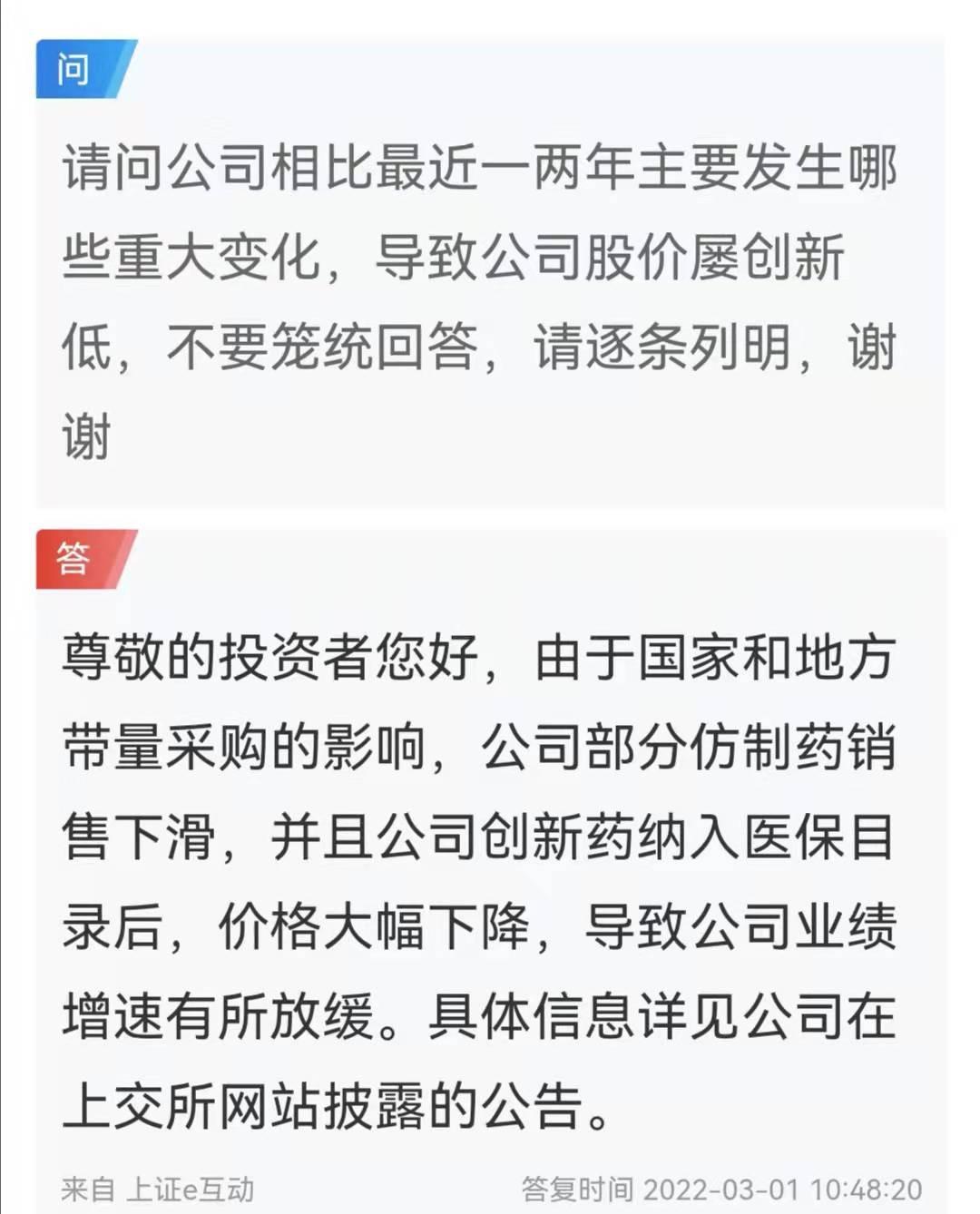 恒瑞医药在投资者互动平台曾提到,“由于国家和地方带量采购的影响,公司部分仿制药销售下滑,并且公司创新药纳入医保目录后,价格大幅下降,导致公司业绩增速有所放缓”。