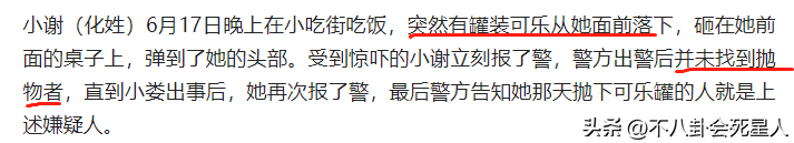 而在几天前,此地也发生了高空抛物,扔了罐装可乐,直接扔到吃饭的顾客桌上,当时就报了警,但并没有抓到人,在小娄出事后,这名顾客再次报警,才从警察口中得知,抛物的就是这名男子。
