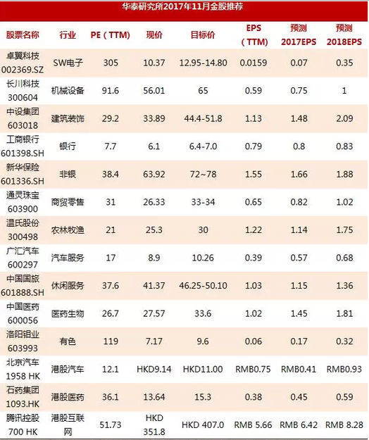 华泰证券建议关注卓翼科技、长川科技、中设集团、工商银行、新华保险、通灵珠宝、温氏股份、广汇汽车、中国国旅、中国医药、洛阳钼业等。