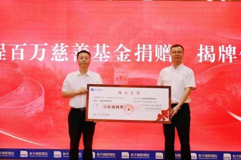 在百万慈善基金启动仪式上,温州和平国际医院分别与温州商学院国际学院、瓯海区侨联、雪君工作室签署“科创基金”协议、“为侨服务”意向合作协议、社区志愿服务医疗机构合作协议。