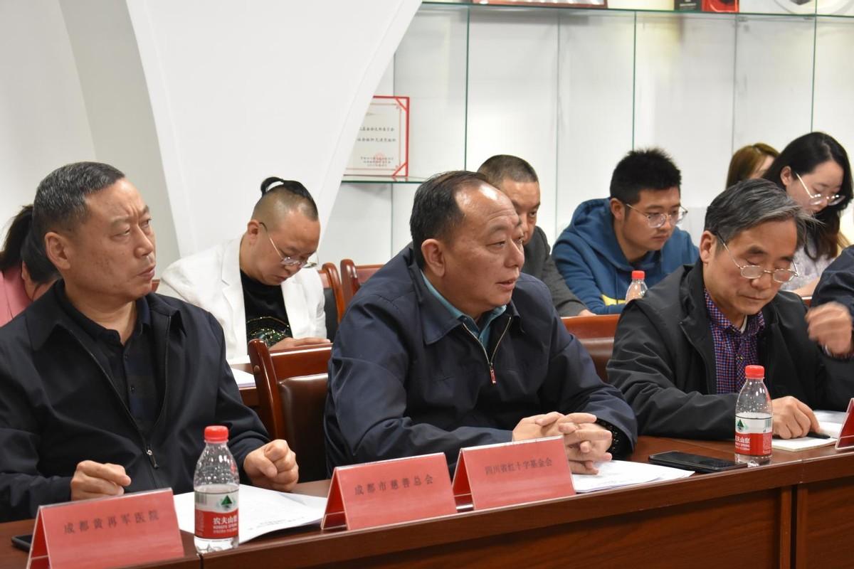 四川省退役士兵创业就业促进会咨询组长蒋维勇,四川省教育基金会理事长谢凤山,四川省红十字基金会理事长刘国平,四川省校园文学协会常务副会长、秘书长孙成,北京联慈健康公益基金会督导薛军,四川省医养结合科学研究院副会长于兴、秘书长李冬梅,成都市慈善总会副秘书长胡彬,天府新区慈善会副秘书长李莉,海惠助贫服务中心主任陈太勇,四川军创集团董事长杨森博,聚星管家总经理李清龙,阳光公益慈善事业促进会会长梁果、秘书长罗叶,康华职业培训校长李春芳,智慧党建四川运营中心副主任王正荣,爱有戏理事长杨海平,阳光心育事长谢松朗,绿徒体育总监赖匡玮,卡菲达二手车副总经理杨永东,黄再军医院有限公司董事长黄再军,考尚教育副总裁邵博,薰衣草助残公益理事长李治苹,值得爱、上海联合水务、高程酒店、华上未来健康、中城幸福、中清科华集团等单位及爱心企业代表参加会议,会议由蔡建明主持。