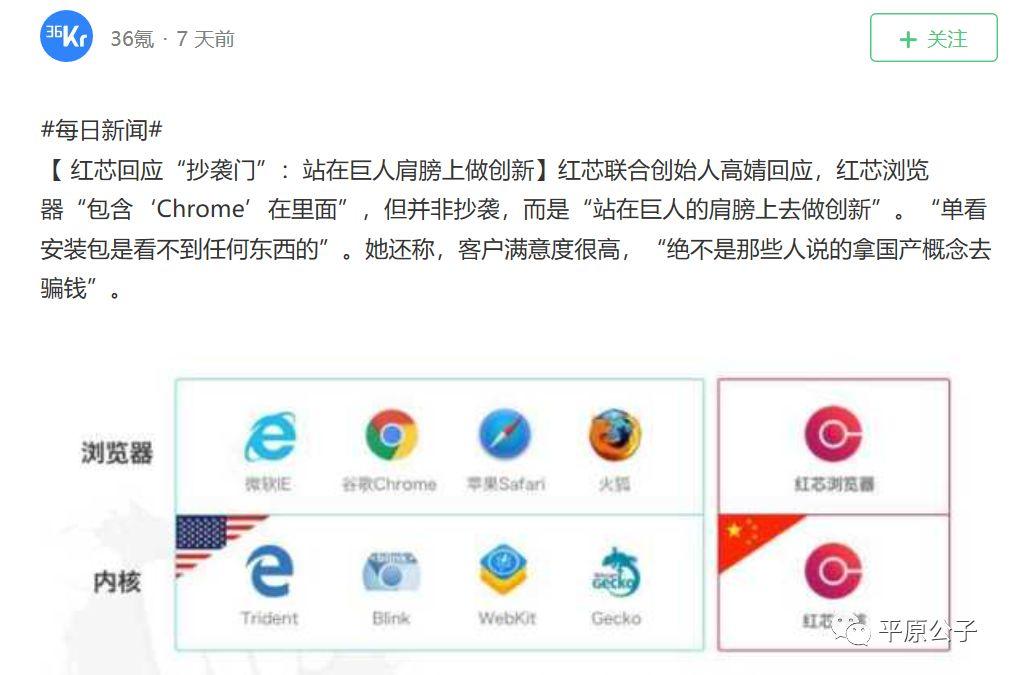 最牛逼的是——这个事情被揭发出来,连央广新闻、人民日报都把它定性为剽窃、抄袭了,红芯的创始人还厚颜无耻跳出来说,咱们是“