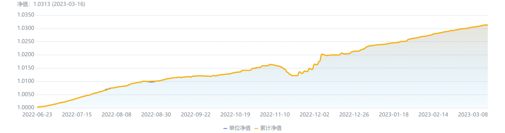 信银理财“安盈象固收稳健六个月持有期1号A类”成立于2022年6月22日,风险等级为PR2(中低风险),最短持有期为181个自然日,业绩比较基准为全债综合指数(全价)。截至3月15日,该产品累计单位净值为1.0313,成立至今年化收益率为4.29%。