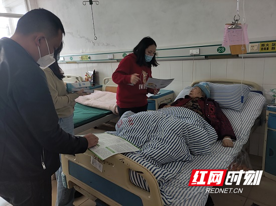 工作人员在沅古坪镇卫生院现场为群众宣传相关政策