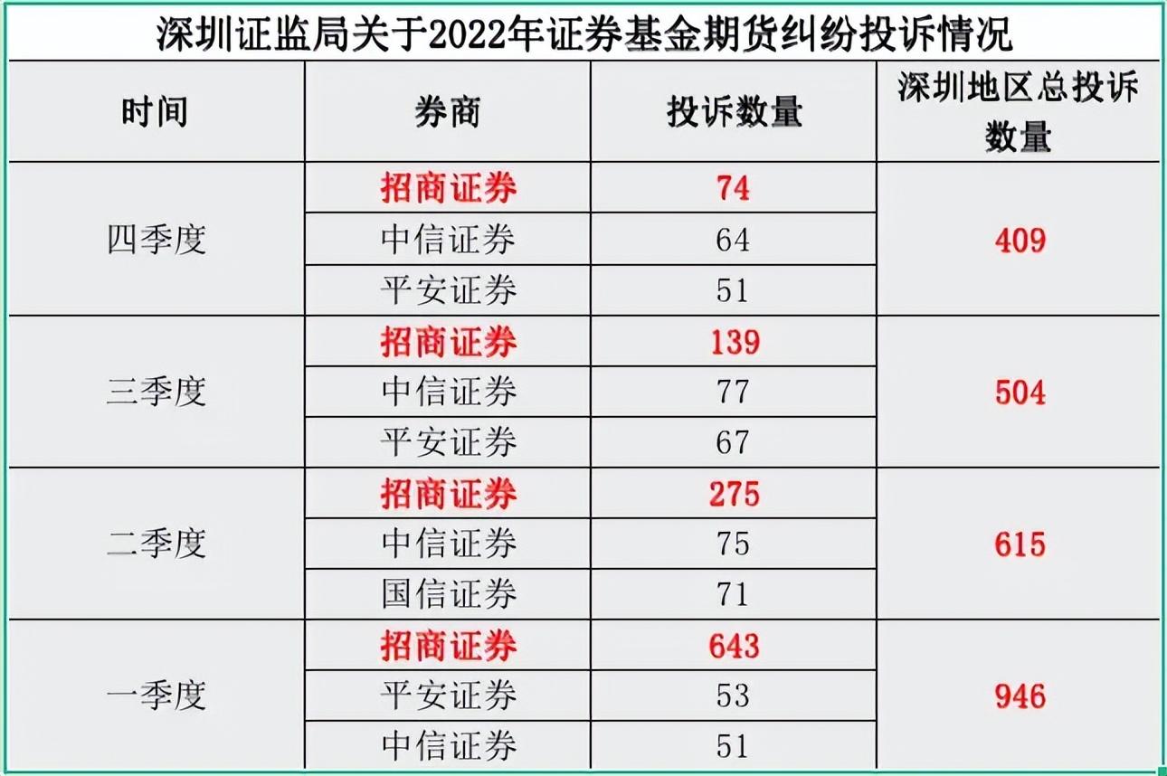 更加引人关注的是,在去年深圳证监局公布的四个季度的投诉榜中,招商证券全部排名第一,可谓霸榜。