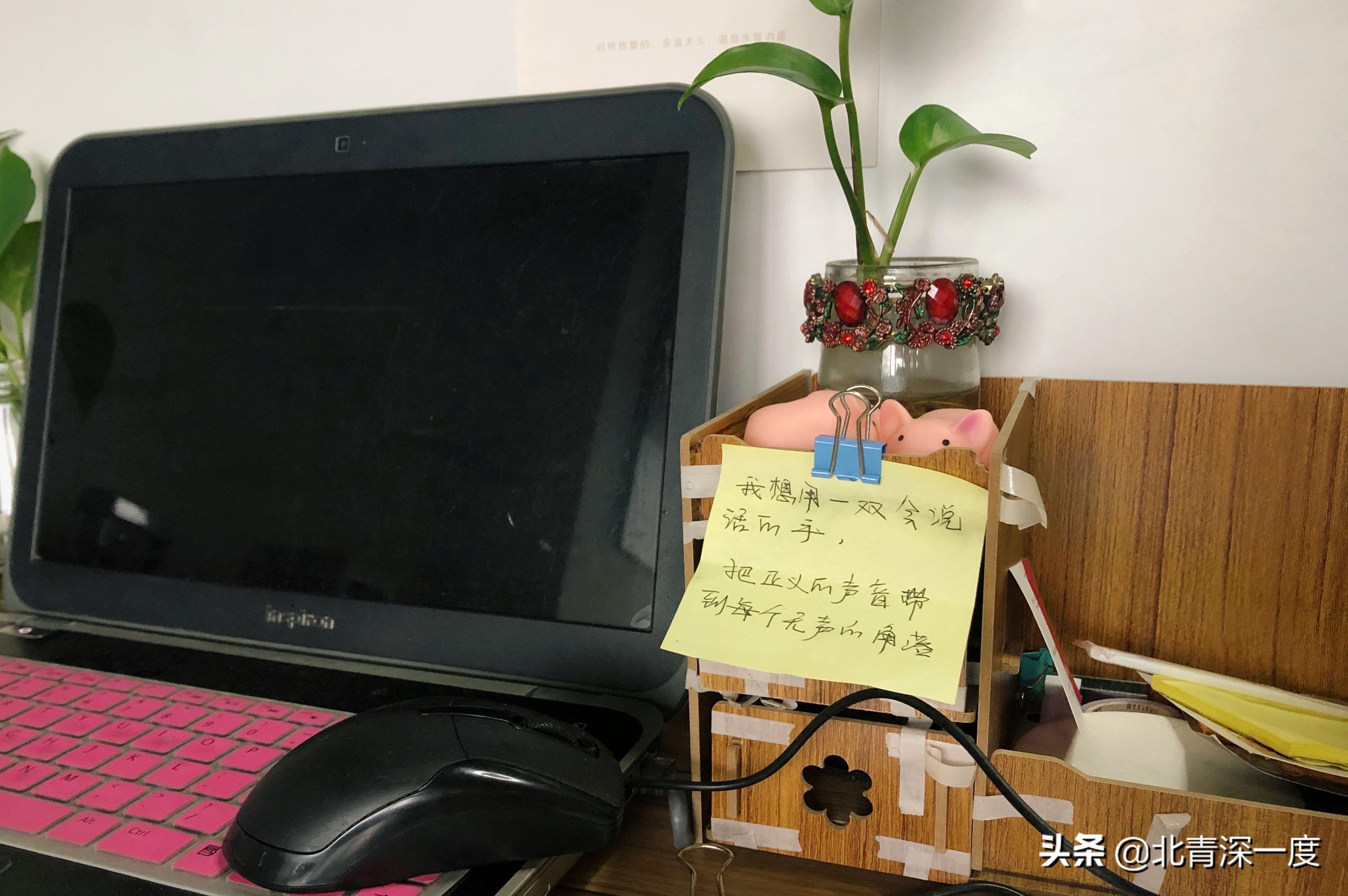 谭婷办公桌上的便签上写着:我想用一双会说话的手,把正义的声音带到每个无声的角落