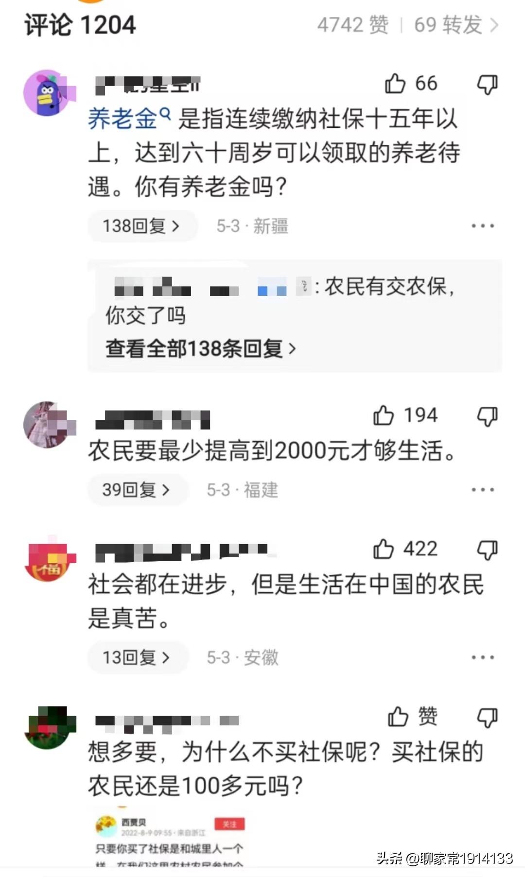 但是评论区一片嘲讽,那些反对给农村提补助的,到底是哪一批人呢?自己又领了多少工资呢?领了多少退休金?你们的付出比这批农民多多少?