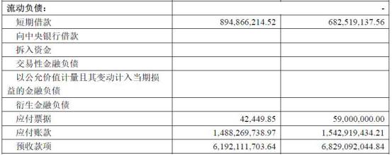 根据三季报披露,鹏博士负债合计158.8亿元,其中流动负债合计96.23亿元。在流动负债中,短期借款8.949亿元,应付账款14.88亿元,预收款项61.92亿元,其他应付款合计5.341亿元,公司的货币资金为19.24亿元。截止今年9月末,鹏博士资产负债率为69.36%,偿债压力明显。