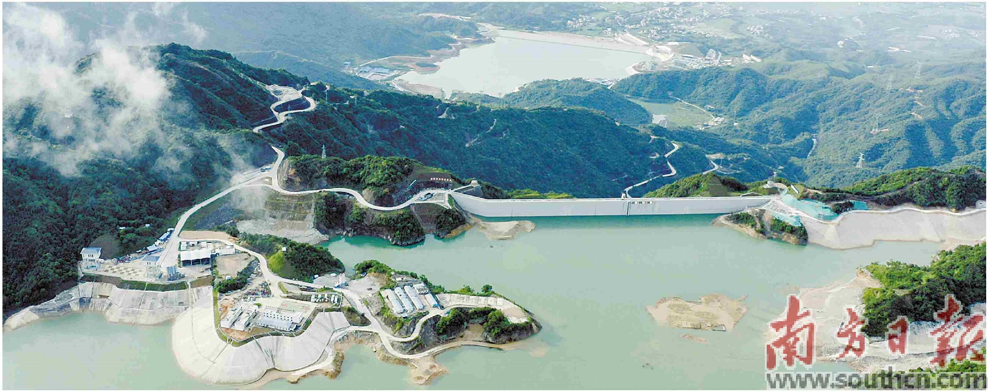 今年5月,南方电网建设的广东梅州、阳江两座百万千瓦级抽水蓄能电站投产发电,粤港澳大湾区电网调节能力提升超过三成,有效促进新能源大规模、高比例接入。图为南方电网阳江抽水蓄能电站上下库全景。 李志杰 丁卯 摄