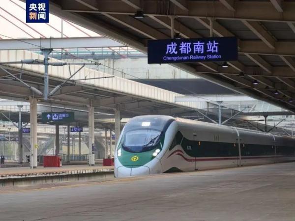 26日8时05分,C57次“绿巨人”复兴号动车组列车从成都火车南站缓缓启动、驶往西昌,这标志着新成昆铁路(成昆铁路扩能改造工程)的最后一段——峨眉至冕宁段开通投运,至此,全长915公里的新成昆铁路实现全线通车运营。