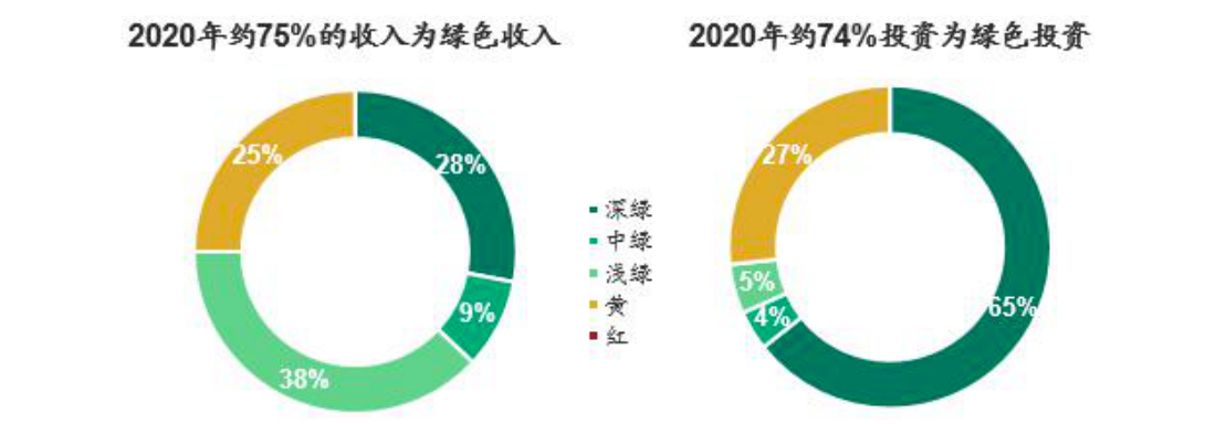 在收入和投资方面,评估内容主要包括:1)公司总收入中来自绿色活动的部分(及其绿色程度),认定为绿色收入;2)公司投资中投向绿色活动的部分(及其绿色程度),认定为绿色投资,以了解公司未来的收入构成和绿色转型战略。