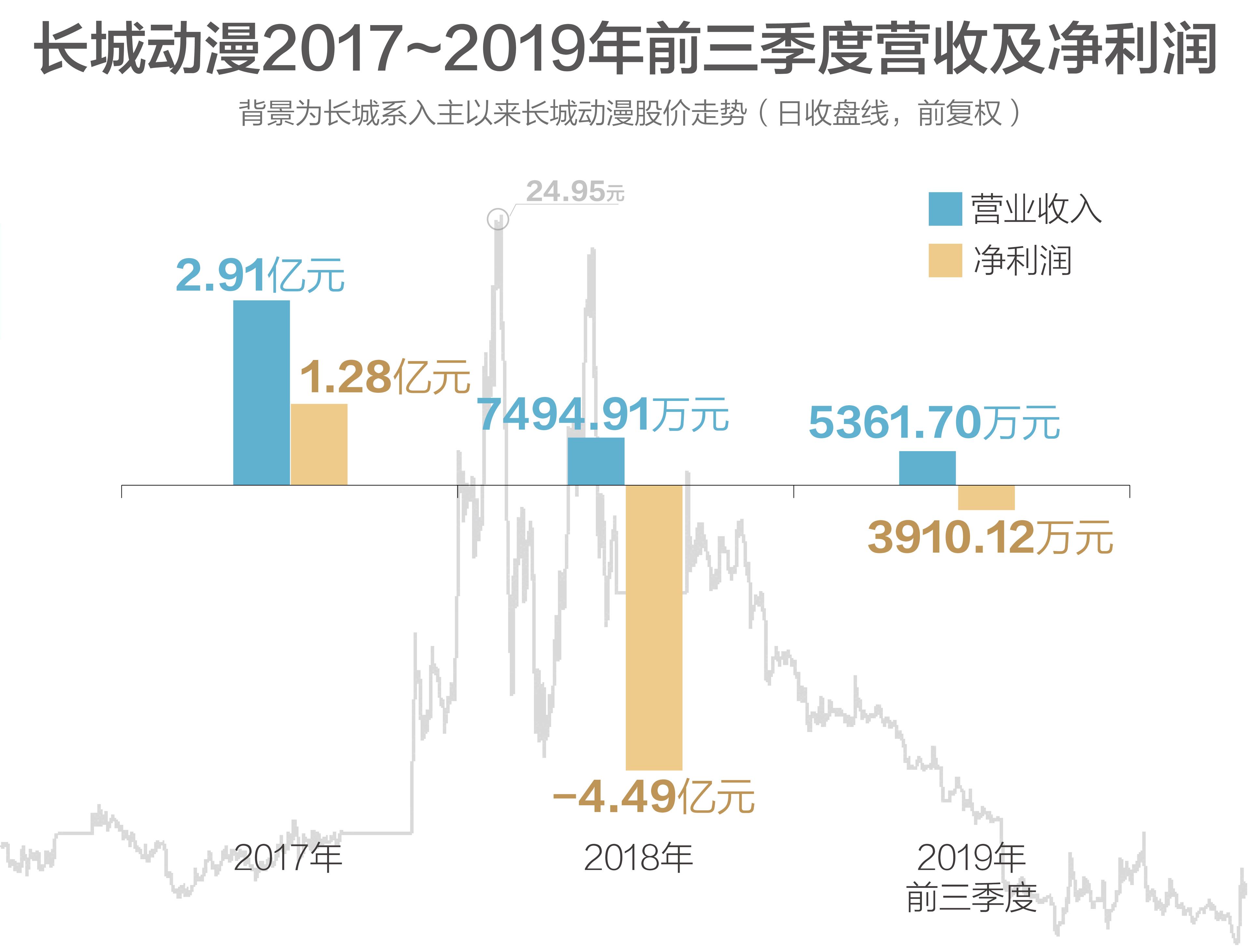 然而伴随着大手笔收购不断加码,长城影视业绩却越来越陷入滞涨的泥潭,股价一步步下跌,高比例质押的风险加大。2018年,长城系旗下三家公司全面陷入亏损,合计亏损8.72亿元,扣除非经常性损益的净利润(简称扣非净利润)亏损扩大至9.15亿元。