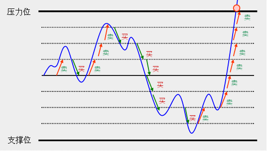 就如同在河里下网打渔,当有鱼上网后我们起网取出鱼(获利成交退出), 之后再重新把渔网放入河里(在原来的位置再预埋买/卖单),等待下次鱼儿上网。之后以此类推。