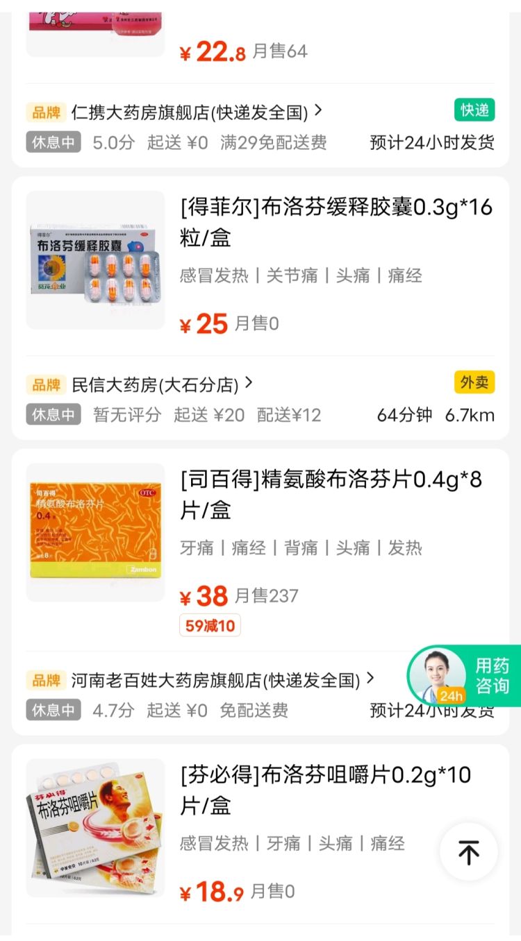 才过了不到3天,国内大城市的药房中,就有很多已经买不到布洛芬了,就连线上渠道都显示售罄。于是,有网友转向偏远县城,以“跑腿+快递”的方式买空了这些区域的布洛芬。